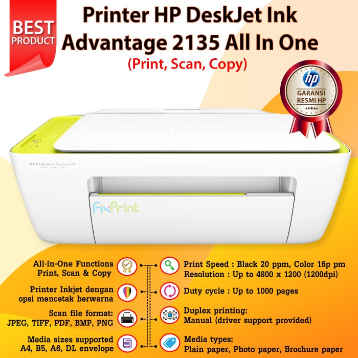 Printer Hp Deskjet Ink Advantage 2135 All In One Print Scan Copy